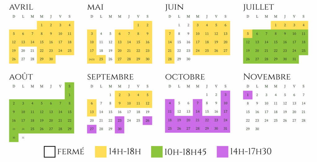 NB: Dernières entrées 30 minutes avant la fermeture